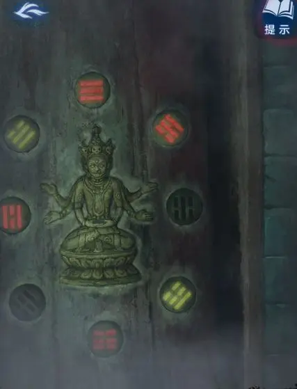 17、回到送喜阁结合线索,在左侧嵌入墙壁的木棺里点亮正确的图案,完成后出现奘尊,将木符咒插入葬尊,获得【铜钱】。