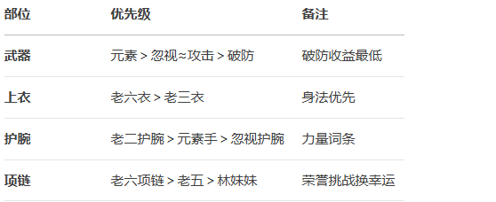 一、装备选择与词条优先级