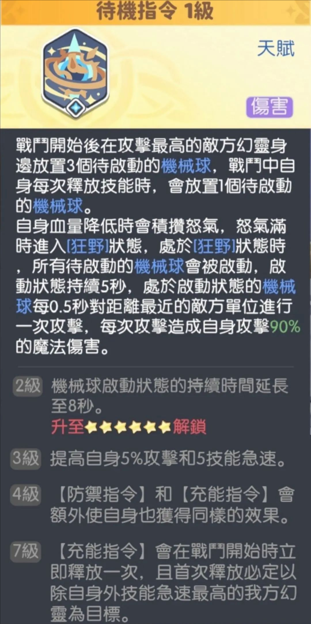 进入狂野状态可启动机械球,机械球具备一定伤害能力。装备推荐攻击套搭配法杖与肖像。