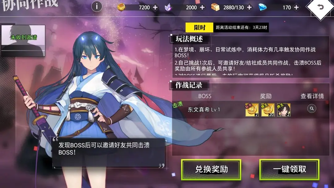 本次限时活动推出东文真希协同作战玩法,玩家通过日常任务概率触发特殊BOSS战。本攻略将详细解析活动机制、奖励兑换策略及高效作战方案,帮助玩家获取最大收益。