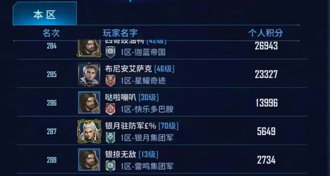 虽然仅有170余个账号且积分暂居末位,但该区以"起起落落仍坚持奋战"的精神著称,在逆境中展现出顽强的战斗力。