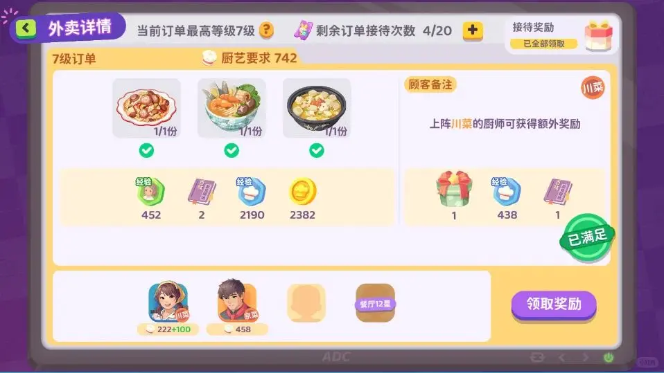 农场订单每日上限60个,提供酱料礼包缓解私房菜压力。