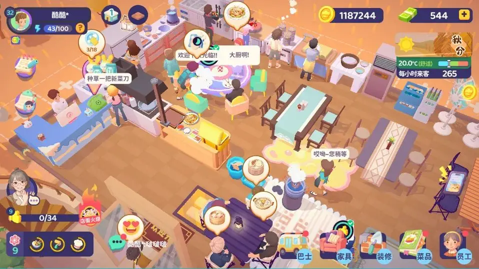 厨具优先升至5级解锁自动处理功能;