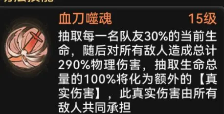 天劫血刀造成的真实伤害能够完全无视目标的防御属性与各类减伤效果,这一特性与天一剑典和千叶迎秋等功法相似,使其在面对高防御单位时具有显著优势。