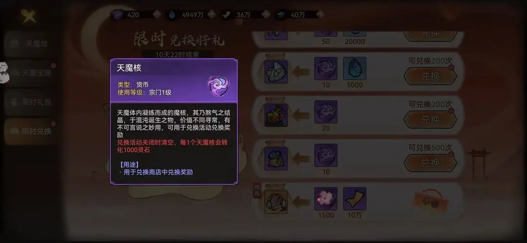 对于已经拥有该功法的玩家,可以适当投入资源进行开发。新手玩家建议优先获取主流功法,待资源充足后再考虑兑换。使用1500天魔核兑换前,建议先评估自身阵容需求。