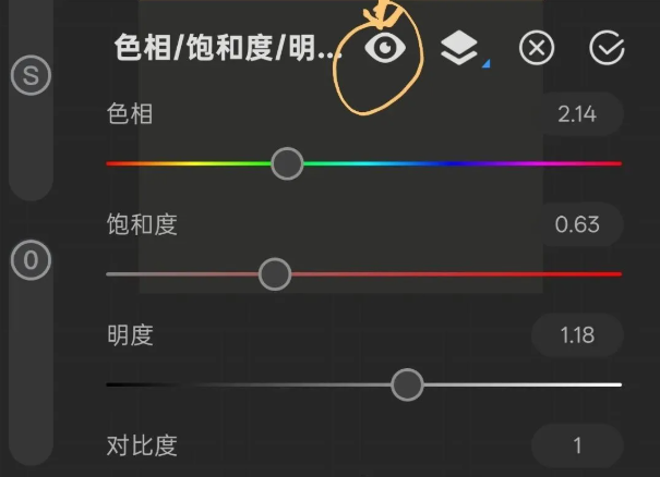 长按眼睛图标可临时显示原始图像,方便进行调整前后效果对比。
