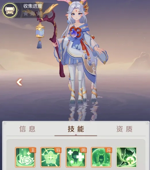 技能推荐高级蹒跚、高级强壮等,与小鹿定位相似。加点2根骨 + 2耐力 + 1灵性,性格选坚毅。