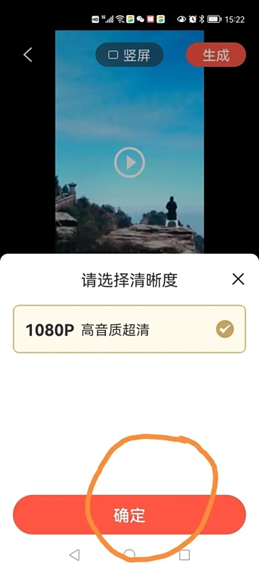 16.点击“生成”,开始生成视频,选择合适清晰度后点击“确定”。