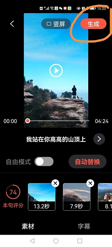 4.在选定歌曲后,截取合适的歌曲片段用于视频。