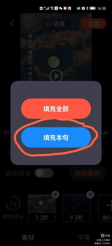 15.点击“填充本句”,按需反复操作直至满意。