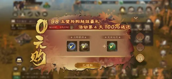 近期0元购活动周期出现变化,从以往每期5天延长至7天,活动间隔缩短,可能意味着后续会有更高档位的充值奖励(如648、888、1048甚至1280档位)出现。活动本质是一种促销行为,玩家花费玉璧购买礼包后,系统会在活动结束后返还相应金额的玉璧,相当于免费获得礼包内容。