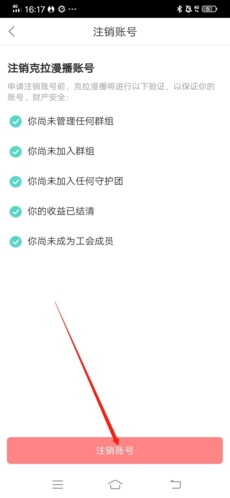 5.完成账号注销的相关验证操作,确认无误后,再次点击下方的“注销账号”。