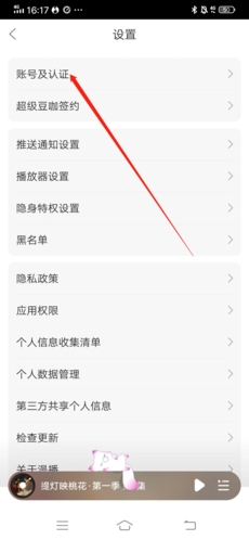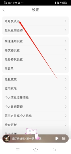 2.在设置页面中,点击屏幕顶部的“账号及认证”选项。
