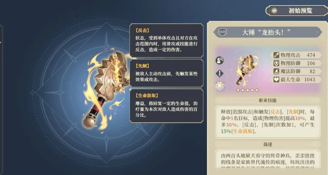 释放范围攻击或者触发反击和先制每命中一名敌人可以额外提高10%的范围伤害。并且反击好人先制次数加一还有15%的额外生命汲取可以说非常适配范围反击角色,如黎哥龙虾将军。反击先制效果加一能有效提升反击总伤害(毕竟多打一下),15%吸血也能维持状态。但可惜老马这次还是没能吃上热乎的
