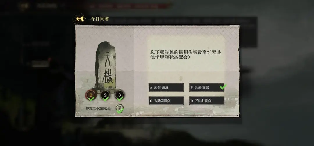 天机初现是游戏中重要的日常知识问答玩法,题目涵盖卡牌机制、角色等级及门派渊源等多方面内容。每日参与答题可获取丰富资源奖励,本篇为您提供精准答案,助您快速完成每日知识挑战。