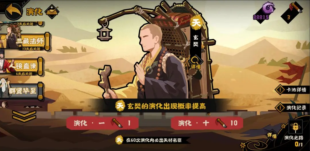 9月5日至9月18日,“十载精研窥万象,一生弘法度迷津” 大唐天材名臣·玄奘,演化概率限时上升!
