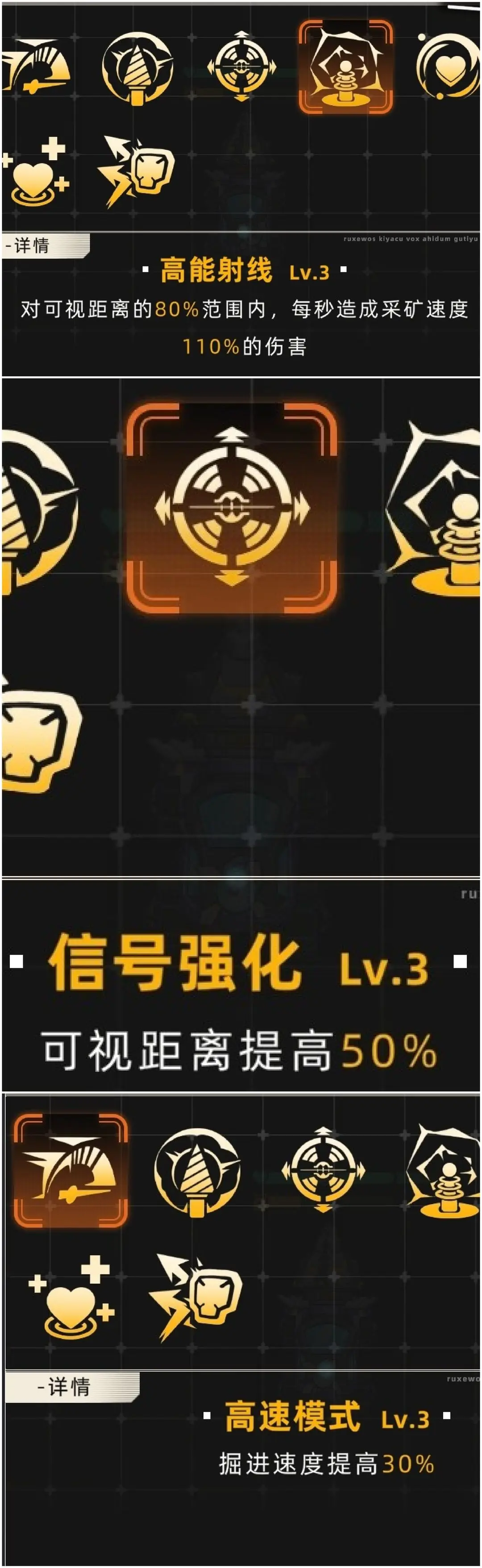技能推荐:新手带高能射线和恢复类或反伤类技能,没有的话可以选增加视野和速度的技能