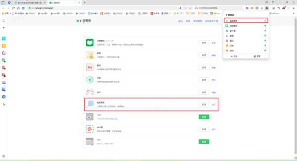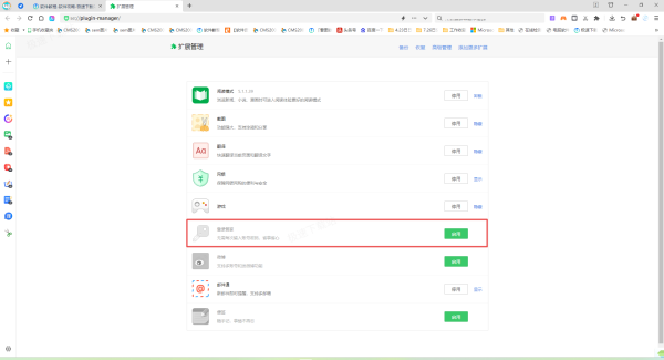 接着,在扩展插件界面中,看看【登录管家】插件是否是停用状态,停用状态时,插件右侧会显示【启用】的绿色按钮。