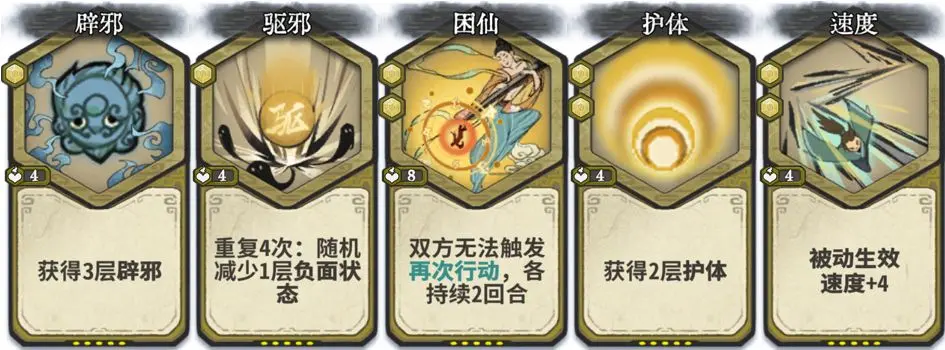 第2-3轮可在筑基大量换牌,提升战力。筑基过渡优先一动水灵波澜(瓶子里首位放水灵牌激活水灵),搭配疏影、赤焰、五行刺。从第4轮开始,尽量不换牌。