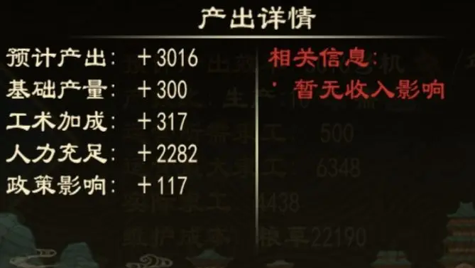 如图所示,工坊的预计产量受到基础产量、工术、人力、政策,这四个因数影响。