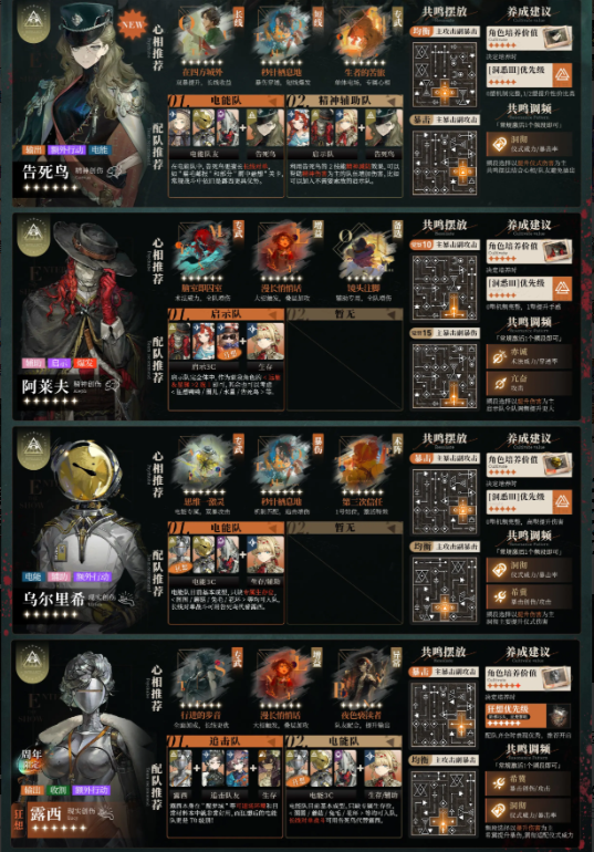 3.常规配队以体系队为主,比如薪血/启示/电能/仪式等等,此外可以考虑主C+辅助+生存的通用配队模式。