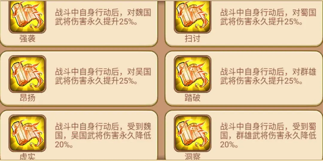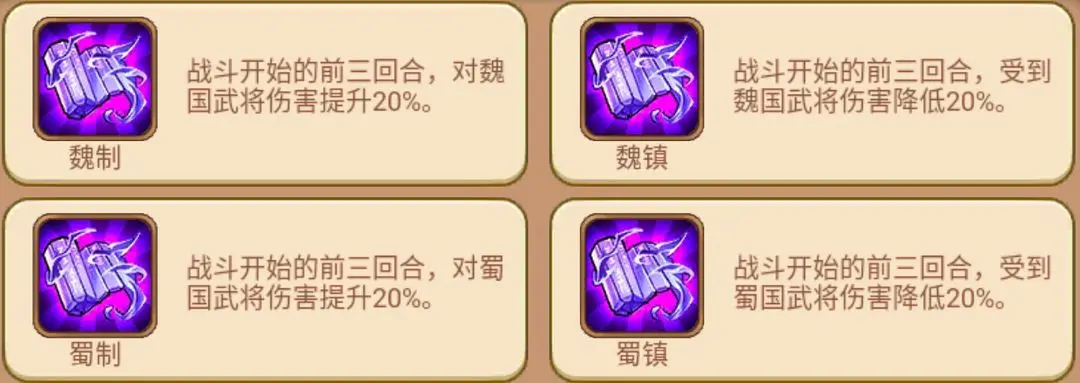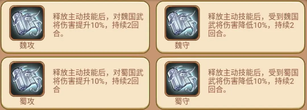 副词条:魏/蜀/吴/群攻击、魏/蜀/吴/群防御。