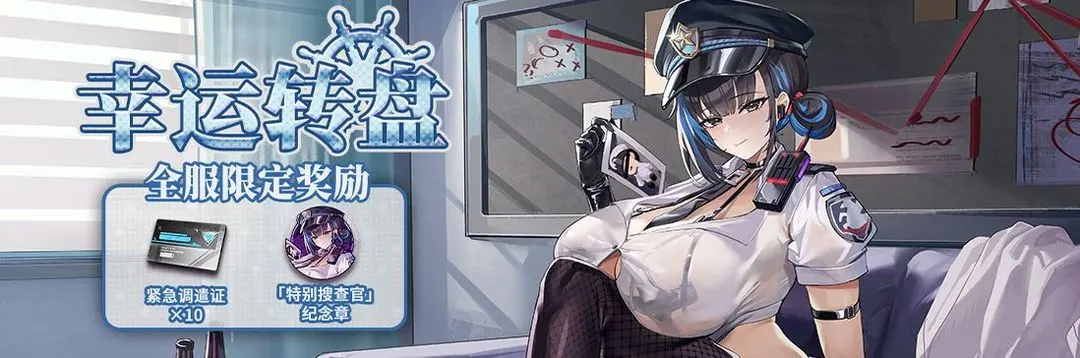 活动期间,指挥官完成每日指定任务即可获取「幸运转盘券」。使用转盘券进行抽奖,有机会获得「燃料」、「晶币」、「高阶装备箱」、「紧急调遣证」、「蜜汁烤鸡」、「中级拓展训练合集」等丰厚奖励。此外,每次抽奖都会累计积分,全服积分达成指定目标后,还可领取「紧急调遣证×10」及「特别搜查官」纪念章。