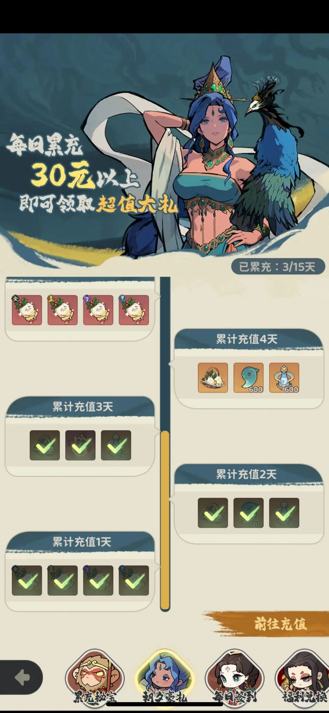微氪点:千抽30重置再拿一个主c,唐僧6/30各拿一个,挂机特权30,正好凑100开启积分抽卡,前期会很舒服,剩下氪点就等圣尊出