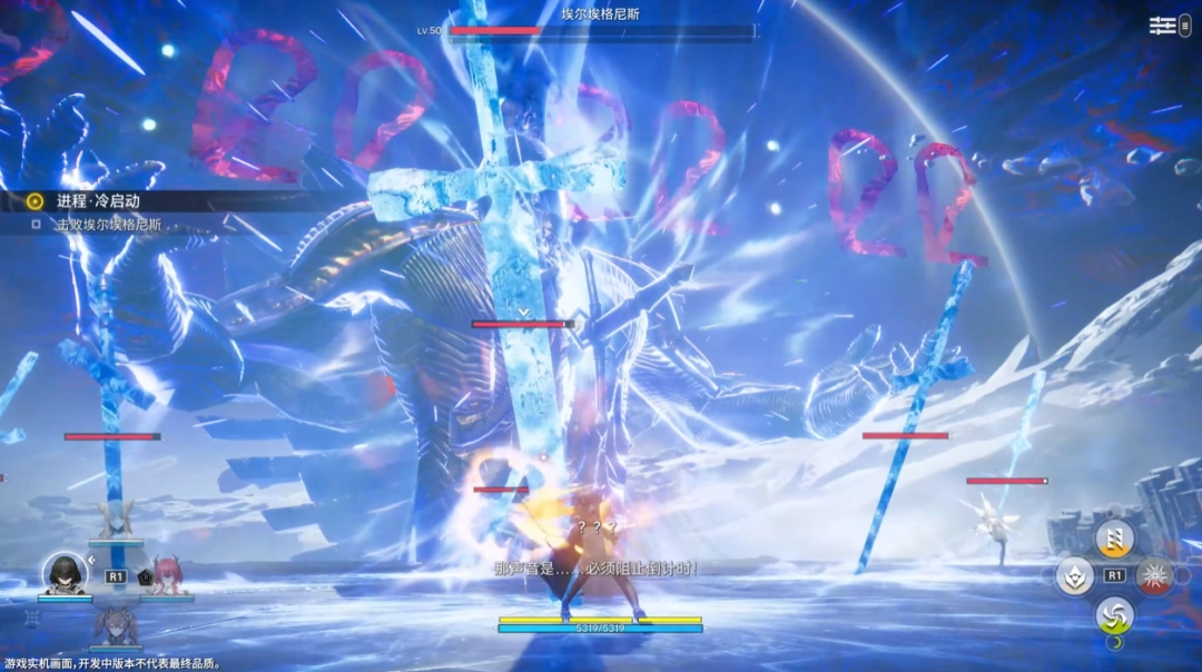 我个人觉得,这个新增的BOSS战,还是相当不错的——它让玩家在序章部分就能更直观的体验到游戏的小队战斗机制。如今的“埃尔埃格尼斯”凭借其身为巨构的压迫感、独特的交互机制,以及更华丽的演出效果,让玩家终于能清晰地感受到,这不再是一个稍强的“精英怪”,而是真正意义上的压轴大戏。