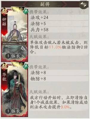 副将推荐:钟繇和华歆,其实程昱并不是很吃副将,如果没有的话随便带点加双抗的副将即可,甚至都不需要法攻,钟繇可以让程昱单体打人时降低目标双抗,而华歆则是加点双抗,并且看运气加点法攻