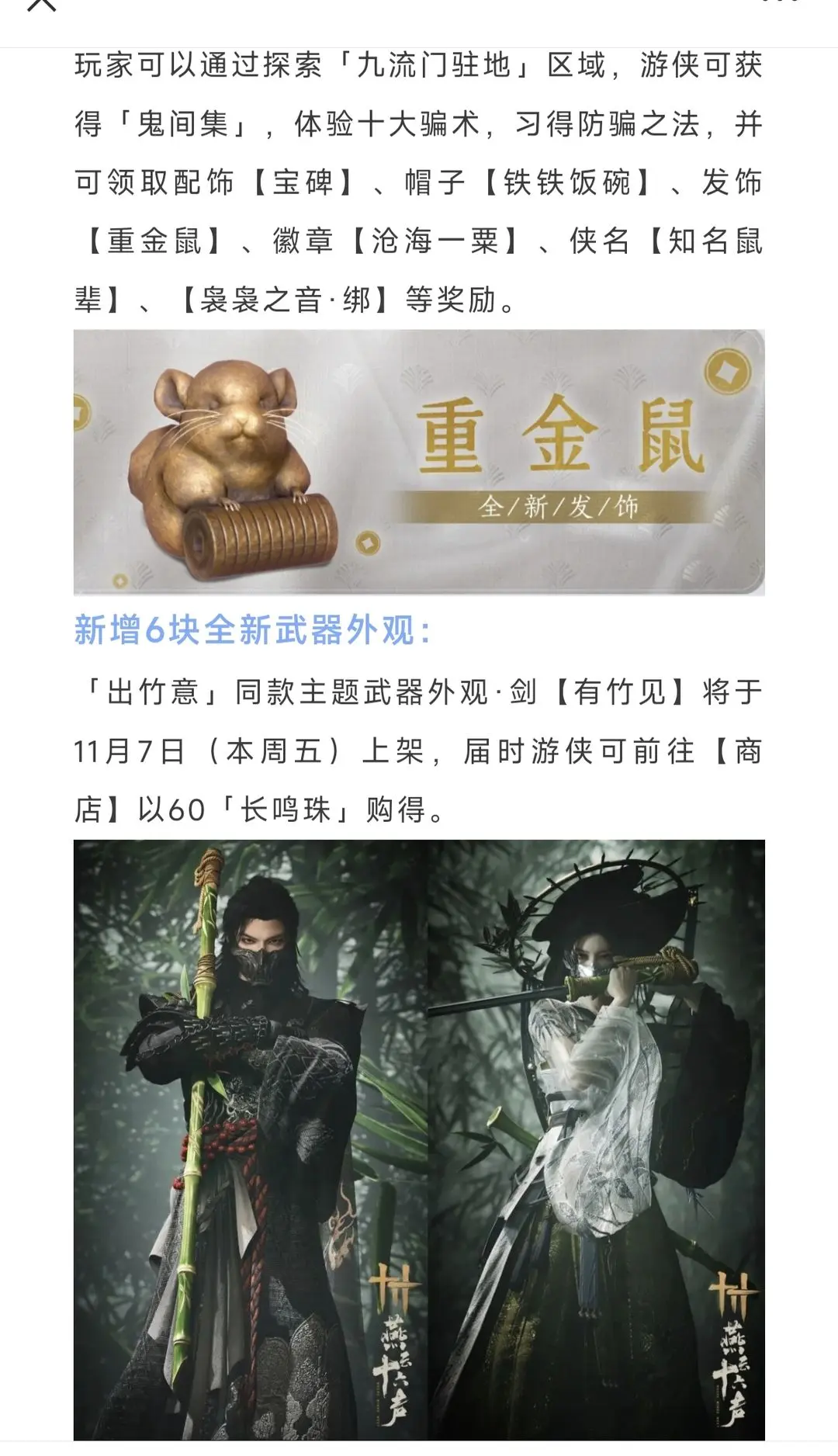 燕云十六声11月7日八项更新揭秘