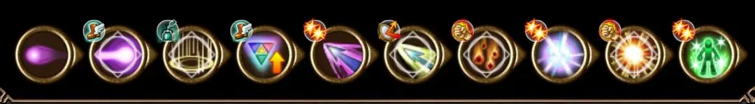 魔法技能:法术/飞箭Lv.5、法术/长枪Lv.5、法术/魔法枪Lv.10、法术/冲击波Lv.7、法术/终结Lv.5、法术/障壁Lv.5、法术/引爆Lv.5、法术/暴风Lv.5、法术/爆能Lv.10、魔力充填Lv.5、缩时咏唱Lv.10、强射Lv.5、魔力灌充Lv.5、变时神术Lv.10、法术/魔法炮Lv.10、法术/毁灭Lv.10、法术结界Lv.10。