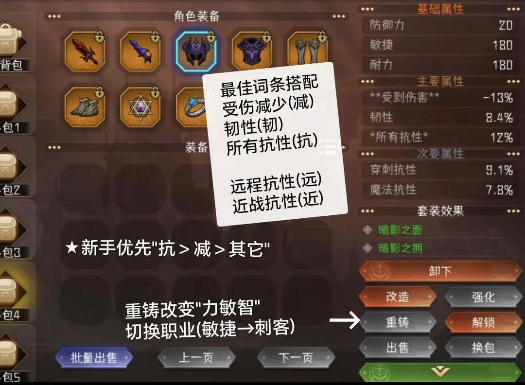 魔:减抗>传距>减防>破物盾