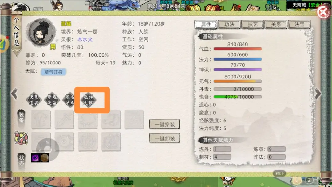 游戏开局选择木火水灵根,性别优先选女性。若有氪挂机大礼包的想法,选女性与韩老魔双修能获取更多经验,韩老魔的回元气天赋堪称双修炉鼎的绝佳选择。