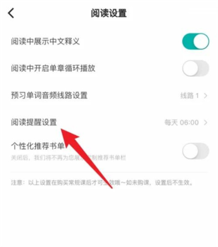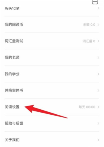 2.在呈现出的阅读设置页面里,找到“阅读提醒设置”选项并点击。