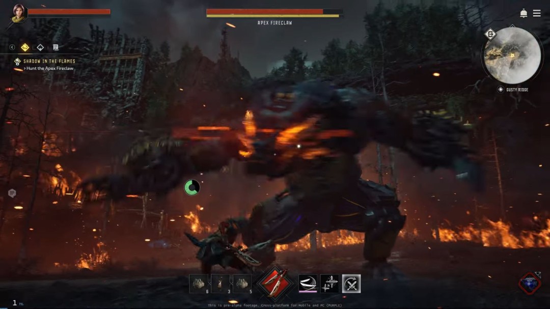 游戏以4-16人组队形式挑战巨型机械兽,核心玩法继承自原作铸铁厂体验。玩家需扫描敌人弱点、破坏装甲部位,并通过钩索快速接近敌人进行追击,或在伤口处放置陷阱赋予异常状态效果。被击杀的机械兽可能掉落武器,玩家可将其存储在坐骑上供后续战斗使用。