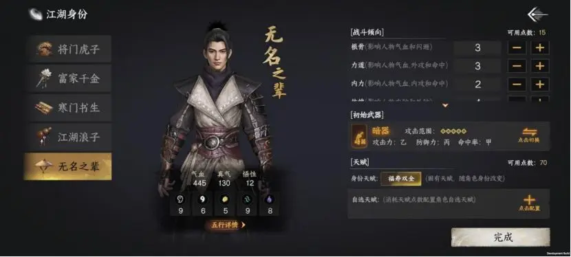 名将之后流落江湖,成为意气风发的少年侠客。怀揣济世之心却得罪权贵,命悬一线之际被灵均相救。虽前尘往事大多遗忘,但江湖之路仍充满挑战与机遇。新手玩家推荐选择此身份,体验从将门子弟到江湖侠客的转变。