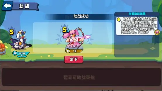 助战英雄不可重生、突破,卸下后恢复正常;根据品质产生不同助战效果。