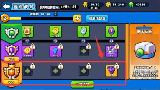 购买98元冒险战令,20级后可获得英雄置换器紫。