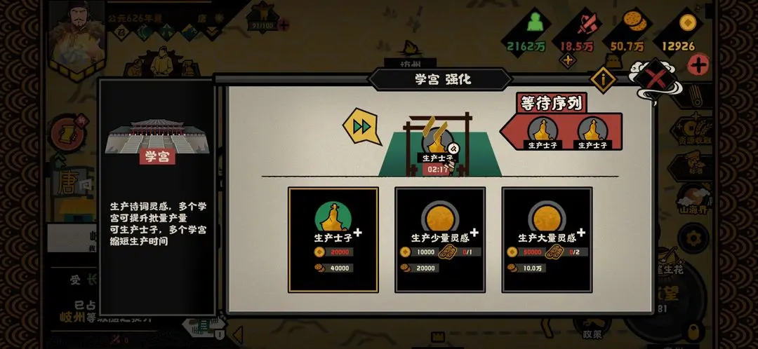 进游戏后别犹豫,第一时间进入政策或者名臣界面卡住时间流速。这一步很关键,能防止孙思邈、玄奘这类无关名臣突然冒出来,打乱刷碎片的节奏。要是你本来就打算刷这俩,那这条可以忽略。