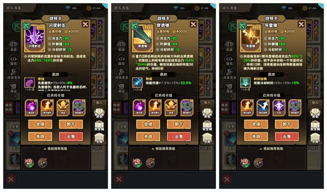 实战中需要保持机动,利用闪现射击主动调整站位,避开敌方关键技能或突进。由于核心伤害来源于普攻频率而非单次爆发,因此对走位和技能衔接节奏要求较高。该流派的短板在于暴击收益不明显,面对超高防御的敌人时可能出现刮痧情况,需要搭配破甲类辅助卡牌来弥补。