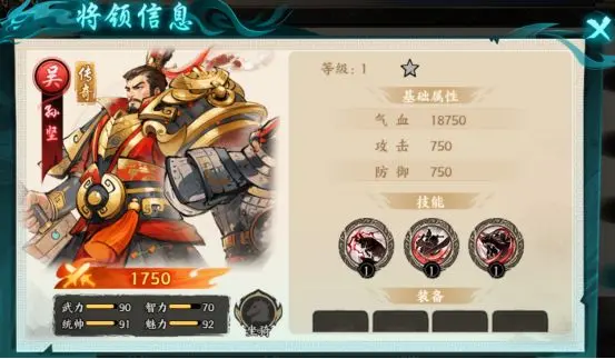 3.被动技-勇冠江东:攻击+5%,伤害加成+5%。(将领升至6星解锁技能)
