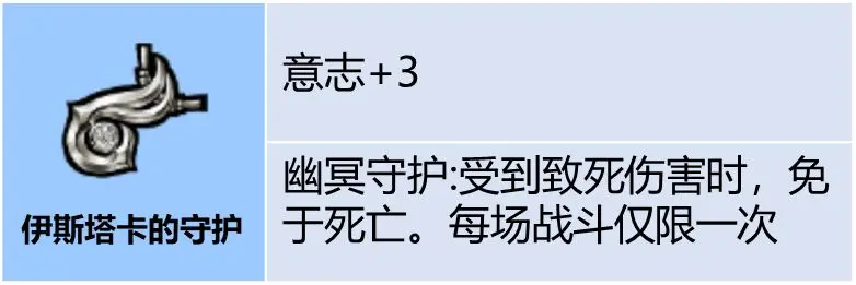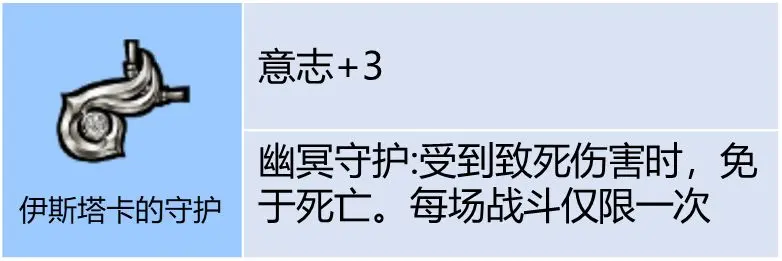 【特定技能】免死属于通用圣物,如果买了,可以给佩尔用,因为对应职业偏弱,免死可以让大剑士有反打的余地。
