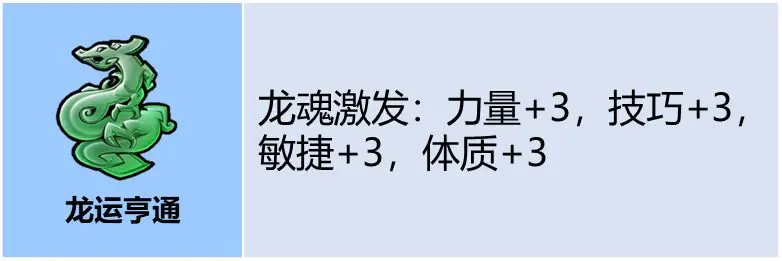 【固定数值】加的属性是最多的,力技敏全是刚需属性,各种场合都用得上,无功无过的选择。同类型的辰蛇(技+8,防-2)
