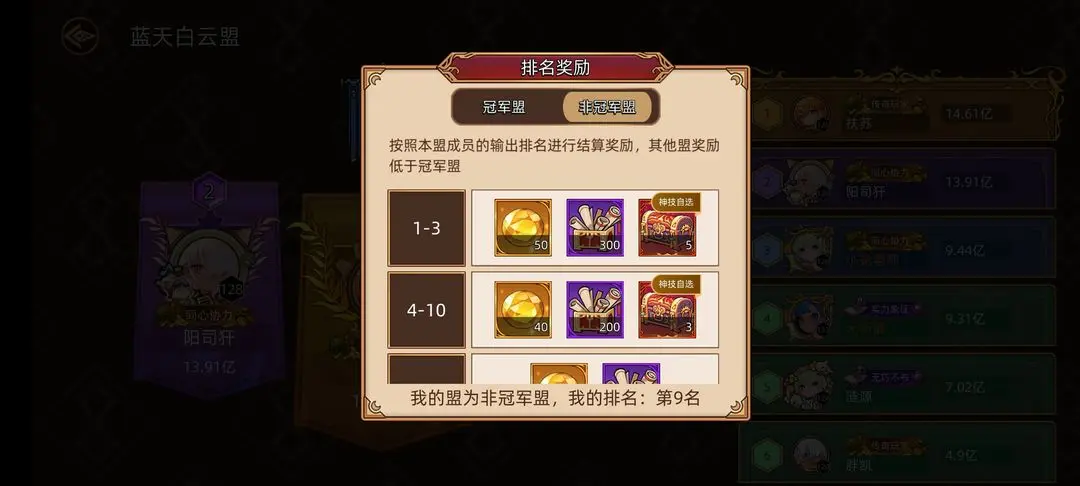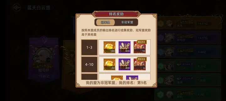 冠军盟最终依赖氪佬,0氪或微氪玩家把任务和输出打满即可,不必强求冠军,享受活动过程。
