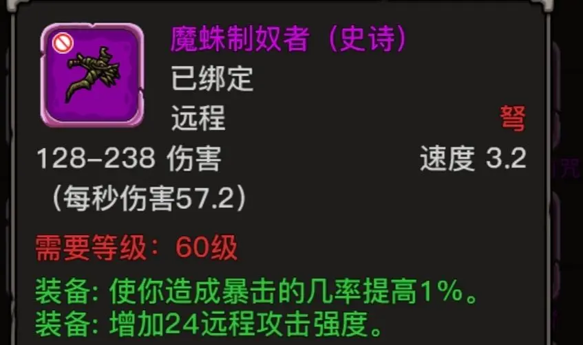 现阶段到虫心版本,毕业武器是狗弩(利苏尔的惩戒之弩),要疯狂刷橙色。虫心的虫枪比不上,只有后面NAXX的蛛魔弩3.2攻速能跟上。猎人攻速提升后,慢速武器元素伤害高,攻击值也高,对技能输出加成大。