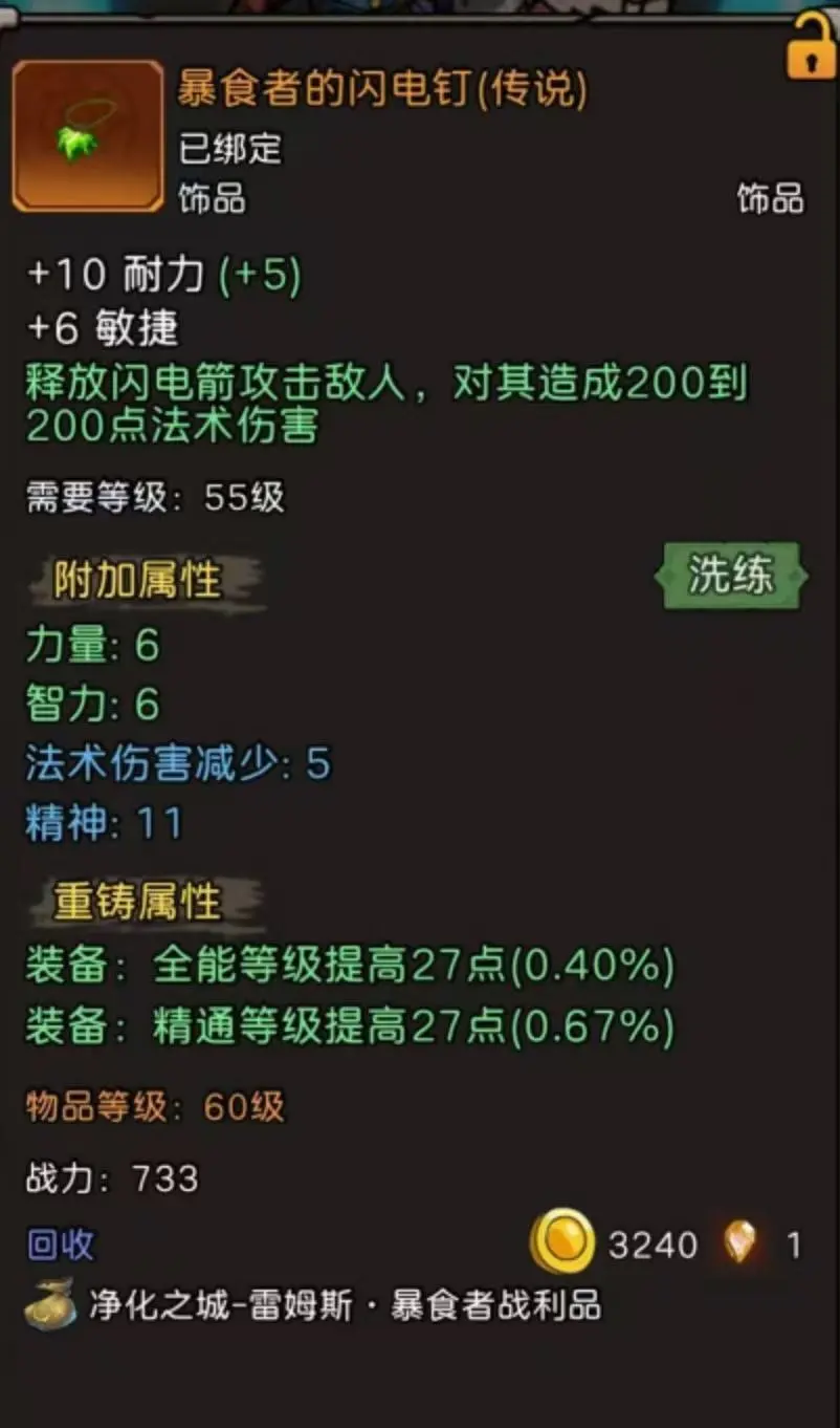 猎人主属性是敏捷,48敏捷等于1暴击,1敏捷能带来0.4伤害和2攻强,30敏对应1闪避。虽说元素强,但对猎人而言,1暴击装备的价值大于5元素装备。