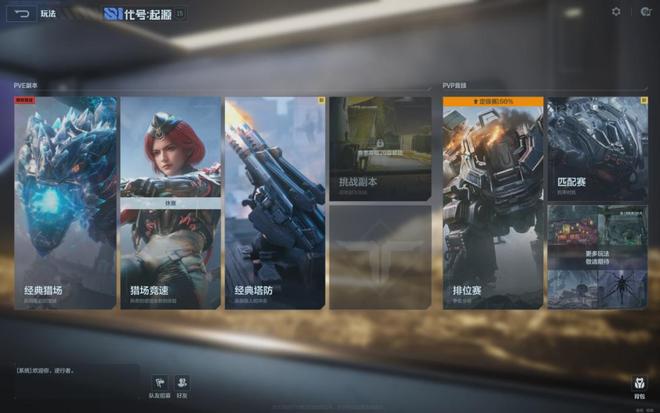 第一赛季PVE玩法有“经典猎场”“猎场竞速”“经典塔防”和“挑战副本”,PVE玩法以机甲战匹配赛和排位赛为主,后续公测还会增加新模式。这些玩法对老玩家不算陌生,体验基本维持最初设想,无夸张数值差异和离谱场面,考验玩家对游戏底层机制和地图设计的理解。