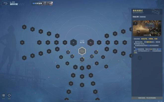 赛季天赋是每个赛季官方为玩家提供的养成方向选择,玩家升级获天赋点投入天赋树,可提升武器伤害、暴击率等数值及赛季技能,根据天赋路径选择构筑不同体系。以第一赛季为例,核心技能是召唤机械臂辅助战斗,有“重机枪模式”和“轰炸模式”两条路线,升级后能解锁不同技能,实战中不同天赋路线玩家担任不同职责。
