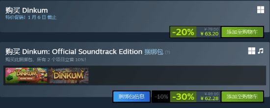 即日起至2026年1月6日凌晨2点(北京时间),金垦小镇游戏本体享8折优惠,购买包含原声音轨的捆绑包最高可享7折优惠。原声音轨包含43首承载游戏独特氛围的背景音乐,深受粉丝和音乐爱好者喜爱。
